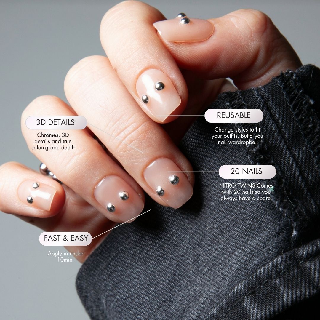 Reusable statement nails. Half the price of a single salon visit. TWIN SET Comes with 20 short nails (so you always have a spare).