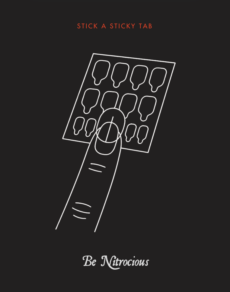 Sticky tabsit sopivat täydellisesti yhden tai kahden päivän pitoon. Kynsien poistaminen on helppoa ja sticky tabsit eivät jätä liimajälkiä Nitrokynsien sisäpinnalle.